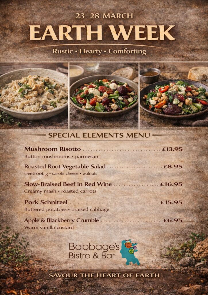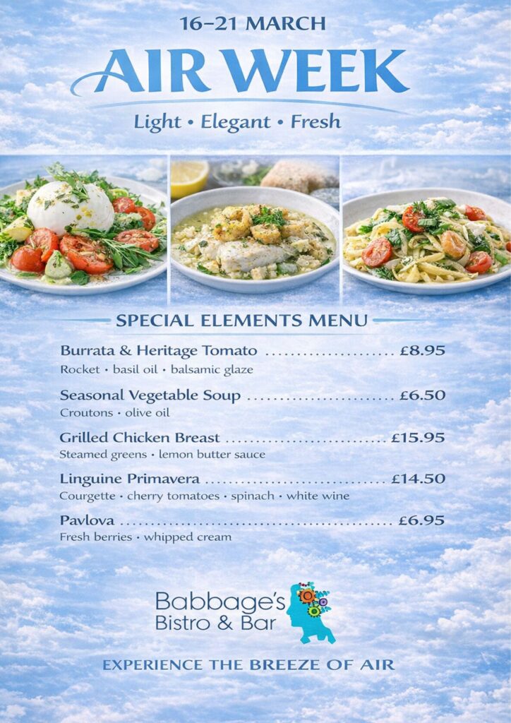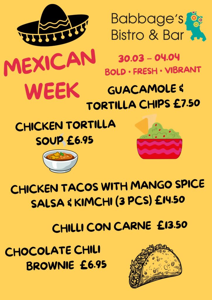 Saturday from 12 to 4 we invite you for afternoon tea at Babbage’s Bistro. Gluten Free and Vegetarian options are available.