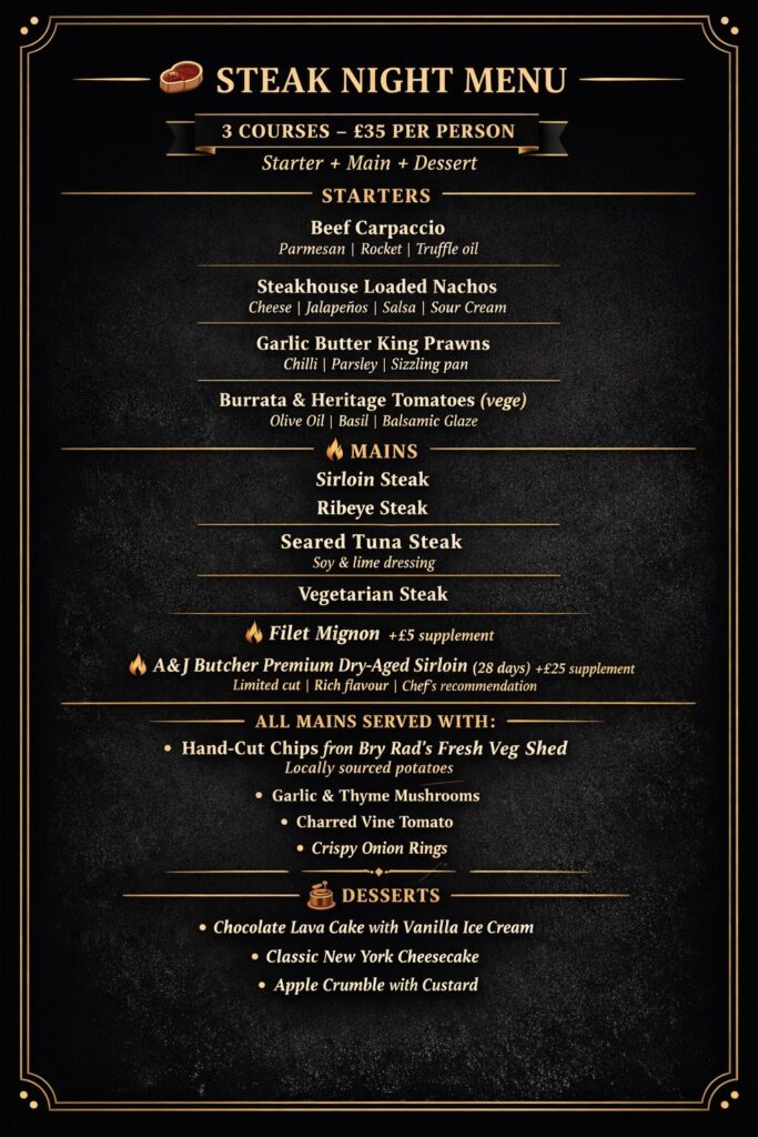 All items on our menu and specials board are made with only the highest quality, locally sourced ingredients. It was our aim when designing this menu to use as many local suppliers as possible to help support local businesses.